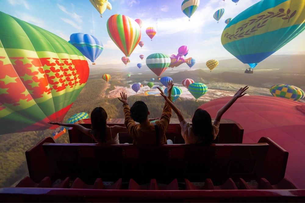 At the Airship Cinema "Flying Eyes," visitors will sit in a moving vehicle that simulates the flight movements of a bird, allowing them to "fly" through space and admire famous landmarks and wonders of the world.