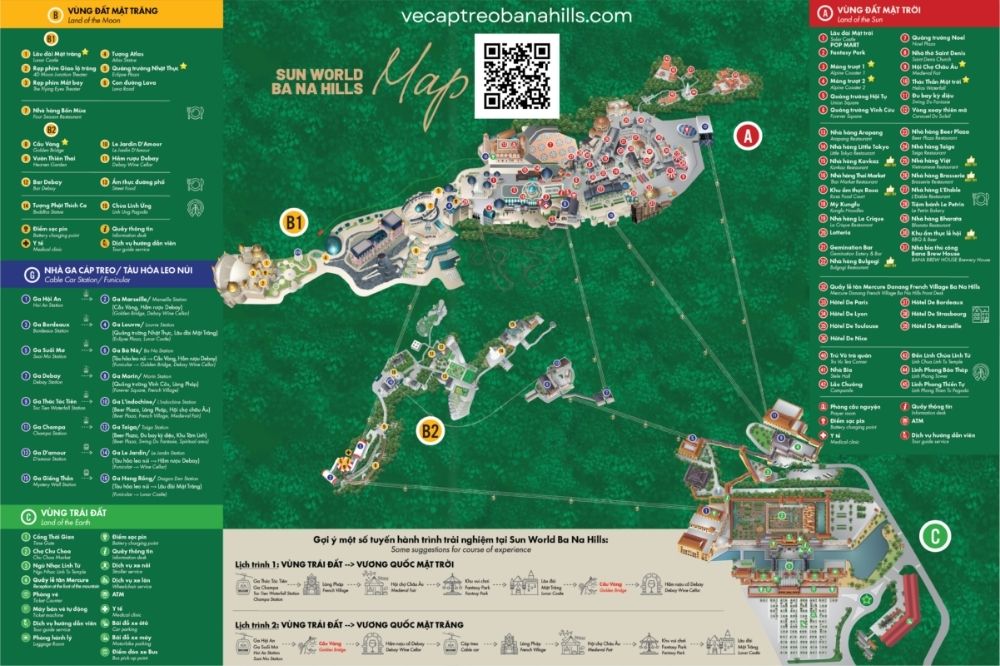 Sun World Ba Na Hills has provided a detailed map to help visitors easily navigate and find attractions within the park. You can view the official map here: https://sunworld.vn/banahills/ban-do