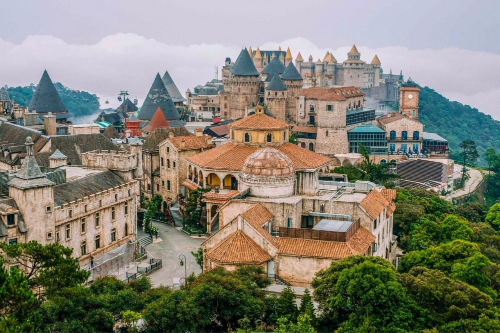 After breakfast at the hotel, starting tour to Bana Hills. Driver and local guide will pick-up you at the hotel and transfer to Bana Hill. Take Cable Car which gains 5 world scores to Ba Na hills station. Stop at By Night station to visit Golden Bridge, Vong Nguyet hills, Linh Ung pagoda, The Old Villas of French. Continue moving up by cable car to the Nui Chua Mountain – the top of Ba Na range, visiting Nghinh Phong top, Le Nim Villas, Orchid Garden... Experience hill climbing train (first and unique funicular in Vietnam, the ticket will be on your own expense) and visit an old French cellar (Debay Ancient Wine Cellar, the ticket will be on your own expense), flower garden Le Jardin D’amour and Linh Ung Pagoda, Fantasy Park.