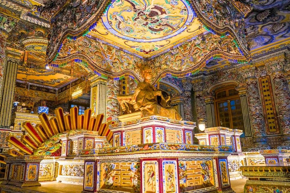 Then, visit Khai Dinh Tomb of Hue, the last architectural work of the Nguyen Dynasty, is one of the most beautiful and unique tombs in the system of tombs in Hue, impressing many different foreign architectural schools.