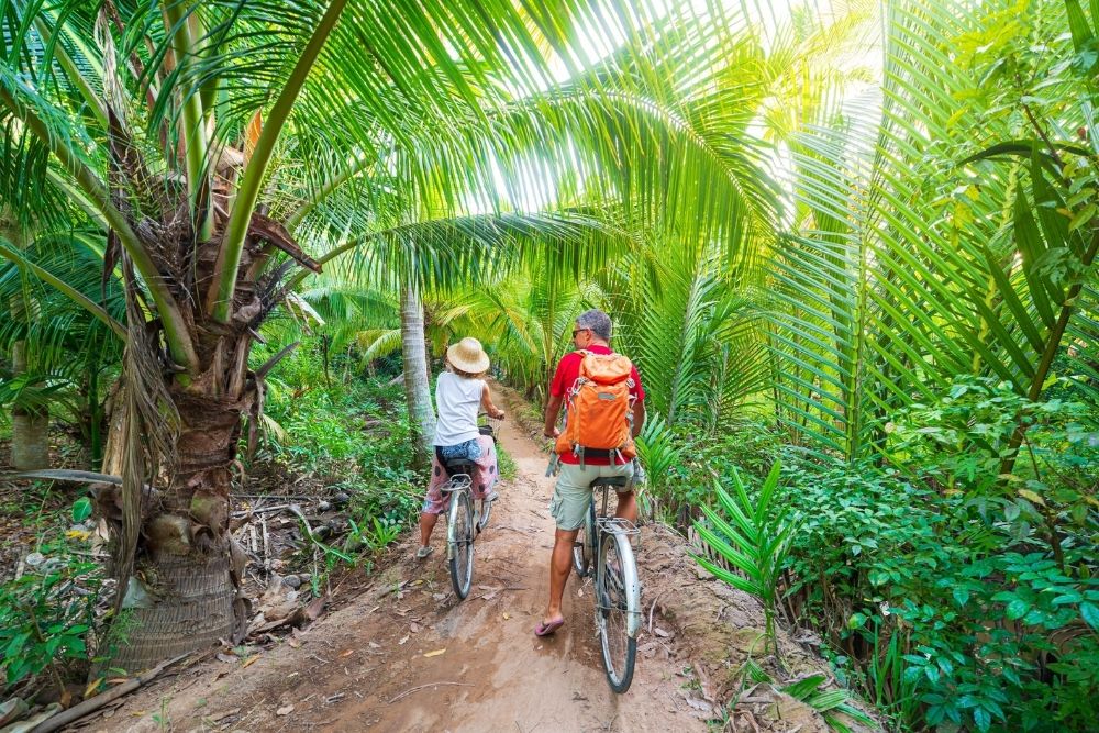Navigation will continue on the Cai Son River. You disembark in the village of Nhon Thanh, where local families specialized in making boat mats. You will be invited to taste fresh tropical fruits. You will continue by bike or tuk tuk "motorized vehicle" through the coconut fields and vegetable gardens and orchards.