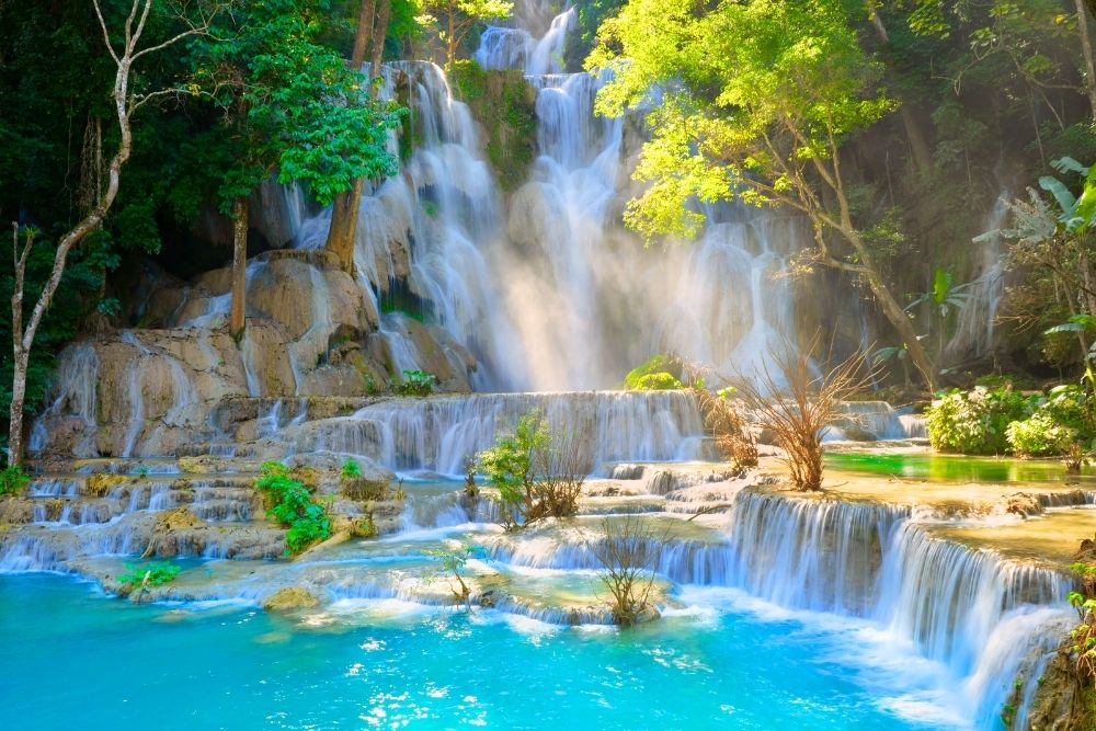 In the early afternoon, we depart for a 1 - hour drive south to one of Luang Prabang’s most picturesque sights, the Kuang Si waterfall. Once at the waterfalls, take a leisurely hike through the national park towards the Kuang Si waterfalls and pass by the Asian Bear Rescue Center. For the more adventurous, continue to the top of the main waterfall. Swimming in the refreshing waters is possible, although between November and January the water temperature is very cool.