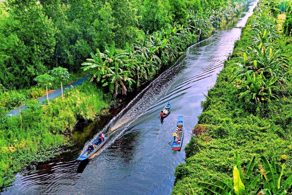 Upon arrival Cruising through Mekong River, passing a fishing villages. Visiting some small islets as Turtle, Dragon, Phoenix Island,.. under a green canopy of water coconut trees. Walking through some villages to a fruit garden. Taste tropical fruits, while having live traditional music. Have honey tea. Short rowing boat ride, enjoy the nice boat ride through natural island and canals in Ben Tre under the shadow of the water coconut trees...