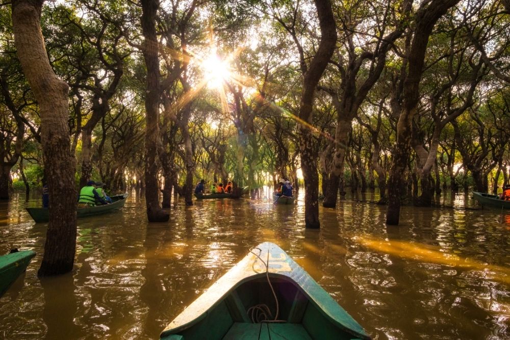 Arrive the port, then embark on a traditional wooden boat and start cruising on the Tonle Sap Lake, Cambodia’s biggest natural water body, one of the largest fresh-water in South Asia and its home to one of the World’s most diverse ecosystems.