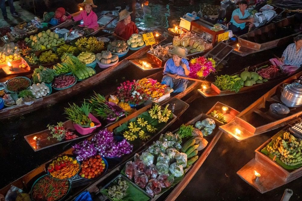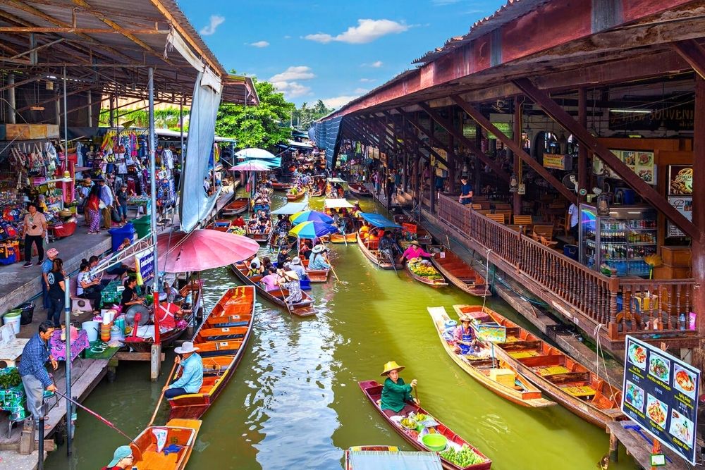 Stop for a motor boat trip along the waterway to the picturesque floating market of Damnoen Saduak. Enjoy your own lunch. In the afternoon we will transfer back to Bangkok.