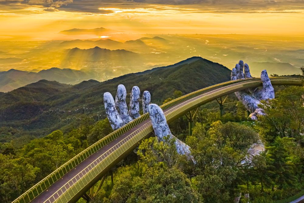 After breakfast at the hotel, starting tour to Bana Hill. Driver and local guide will pick-up you at the hotel and transfer to Bana Hill. Take Cable Car which gains 5 world scores to Ba Na hills station. Stop at By Night station to visit Golden Bridge, Vong Nguyet hills, Linh Ung pagoda, The Old Villas of French. Continue moving up by cable car to the Nui Chua Mountain – the top of Ba Na range, visiting Nghinh Phong top, Le Nim Villas, Orchid Garden… Experience hill climbing train (first and unique funicular in Vietnam) and visit an old French cellar (Debay Ancient Wine Cellar), flower garden Le Jardin D’amour and Linh Ung Pagoda.