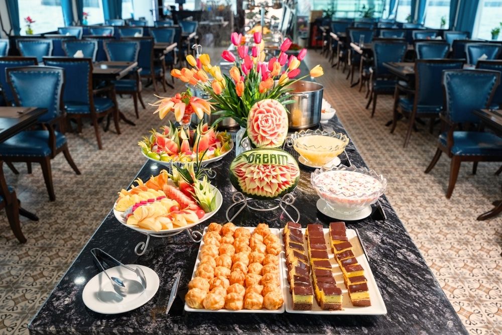Wake up early in the morning to enjoy the aquamarine waters of the bay at its best. After tea/coffee and pastries have been served, the boat will continue to cruise quietly through the spectacular limestone formations of Halong Bay. Enjoy this more isolated part of the bay’s spectacular and unique islands. You will return to Halong Harbor after a very hearty brunch on board (at 12pm).